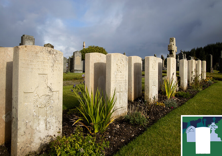 Many of the First World War burials in the cemetery are men who died from wounds received in action or illnesses and were laid to rest here by their loved ones, such as Assistant Paymaster James R. Gordon. James served with the Royal Naval Reserve and was the son of a local distiller. He died at the Royal Naval Hospital in Chatham on 20 February 1918, and his loved ones requested he be laid to rest in Oban.