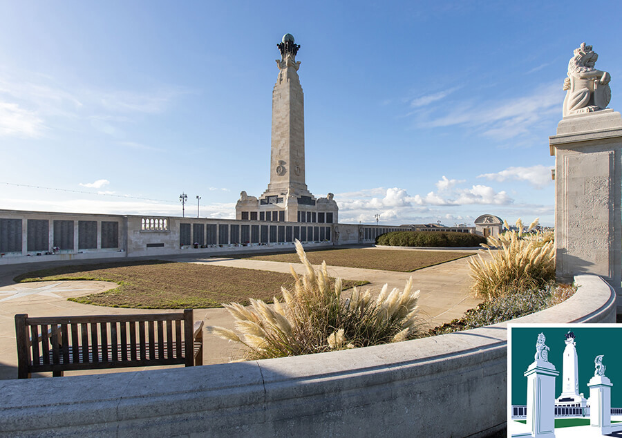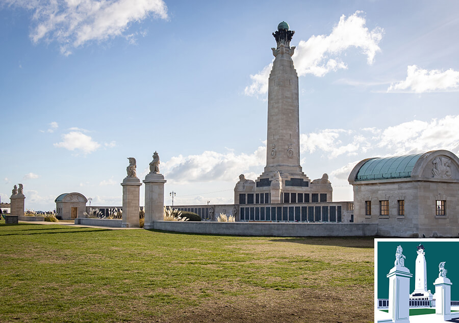 When someone joined the Royal Navy, they were allocated to a particular ‘manning port’ for administrative purposes. The Admiralty and the Commission decided that the three manning ports in Great Britain - Plymouth, Chatham and Portsmouth - should each have an identical war memorial to bear the names of their naval personnel with no grave but the sea. The Commission built unmistakable obelisks which would be seen by all vessels using these ports, keeping the dead in daily view.