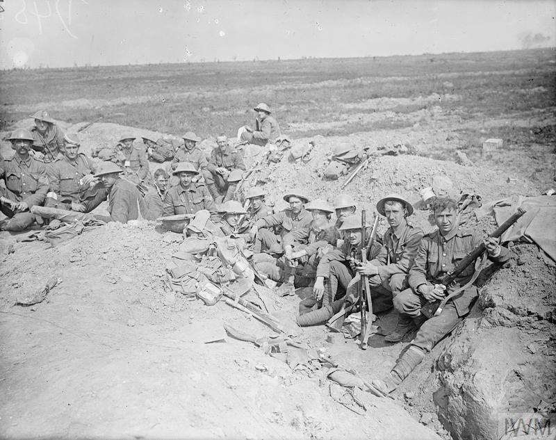 Welsh Guardsmen sit in a reserve trench waiting for action at the Somme, one of WW1's most infamous battlefields (© IWM Q 4416)