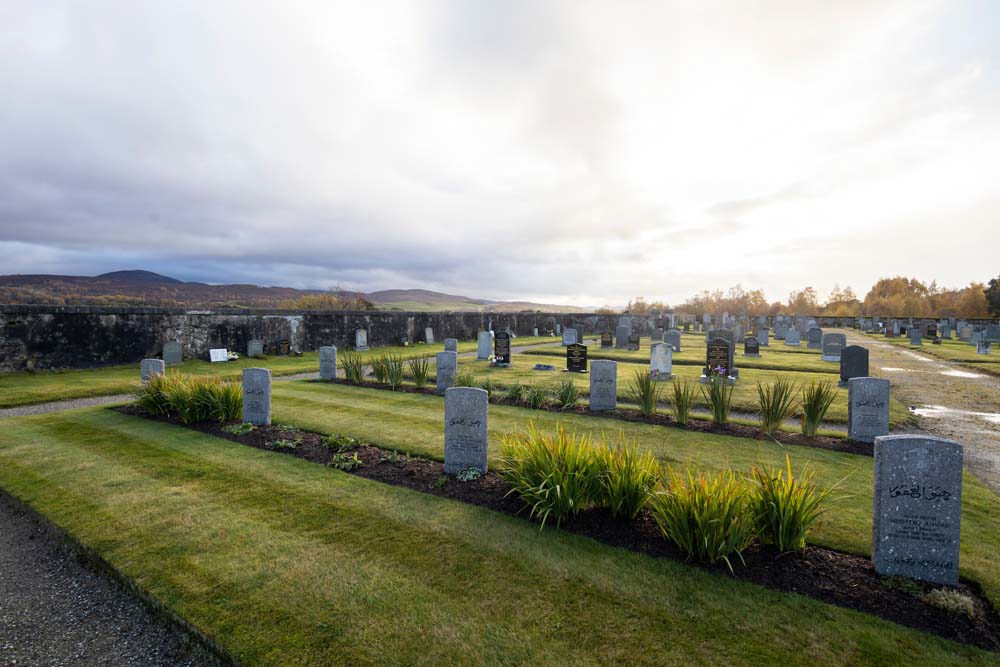 Most of the RIASC men buried here died of natural causes like infections and tuberculosis, but the first to be buried here - Naik (corporal) Mohammad Sadiq - was shot and killed by a comrade with a grudge against him in camp at Loch Alvie. Driver Khan Muhammad died of exposure during an exercise in the Cairngorms, and Driver Muhammad died of injuries sustained when a truck overturned.