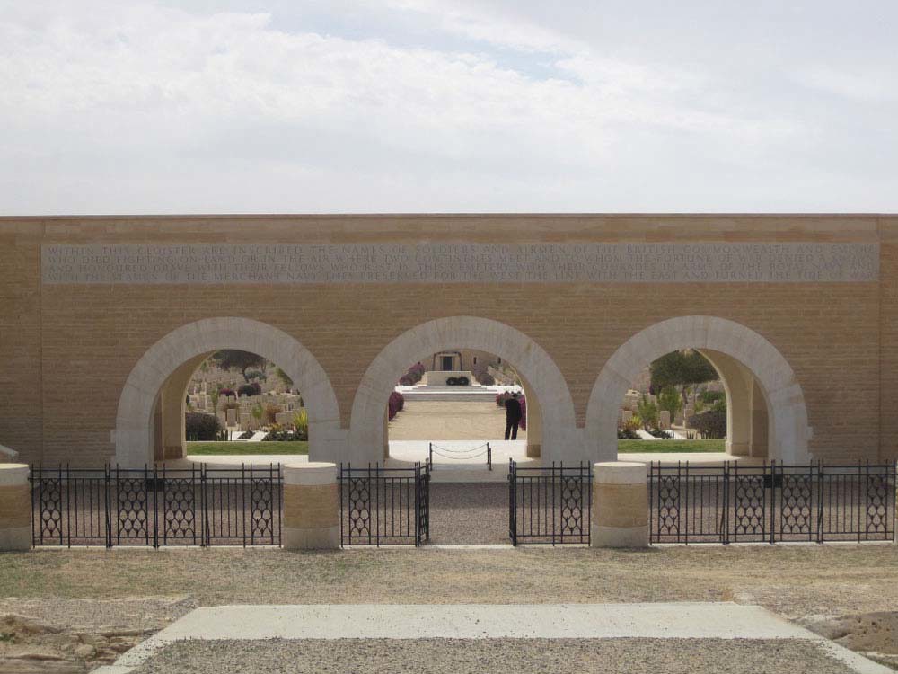 Designed by Sir Hubert J. Worthington, the cemetery itself is a walled oasis of serenity set amidst the shifting deserts of Egypt. Shrubs and local trees provide small verdant slices of greenery while all the while the white limestone headstones stand sentinel over those buried here.