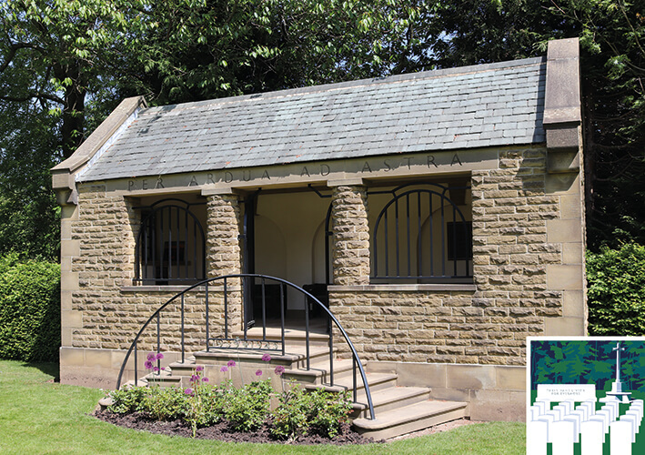 The air force association continues in the architecture of the site as the design of the cemetery includes an RAF shelter building. The shelter bears the words ‘PER ARDUA AD ASTRA’, the RAF motto, a Latin phrase meaning “through adversity to the stars”.