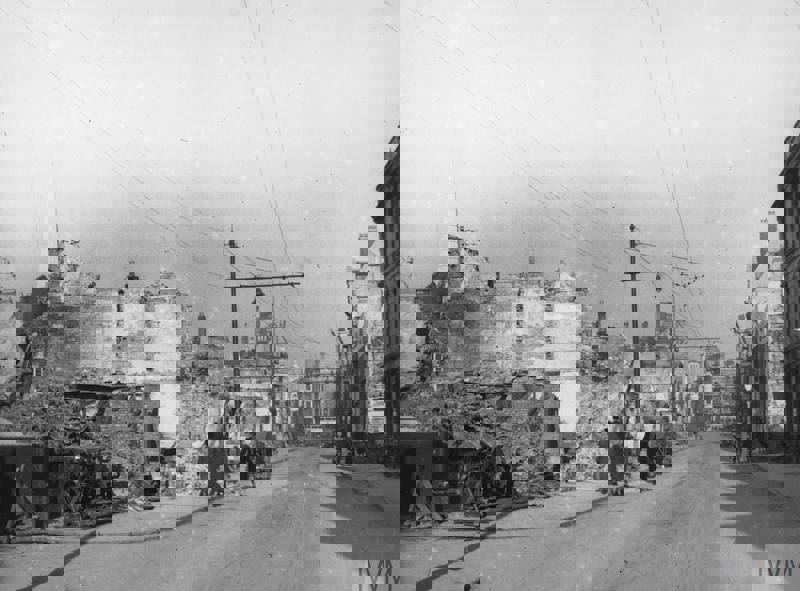 The ruined buildings of Southampton Lower High Street following a night bombing raid (© IWM ZZZ 8205C)