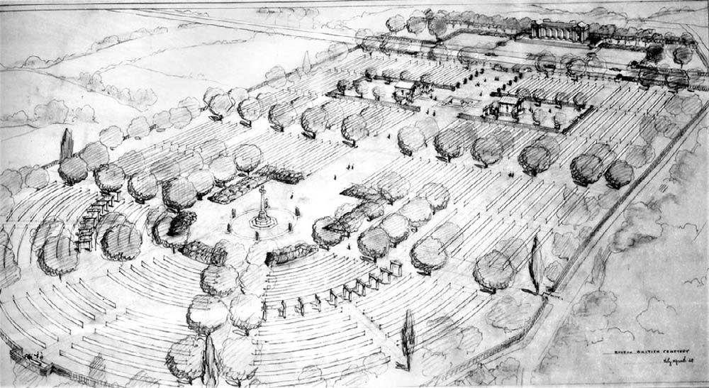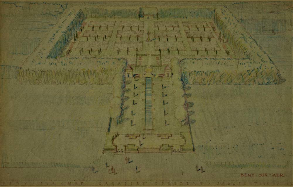 Philip Hepworth, architect and designer of Hermanville, chose to replicate the path the advancing infantry took in the look and feel of the cemetery. Grassy dunes give way to lush greenery, reflecting the transition from beach outskirts to Normandy countryside.