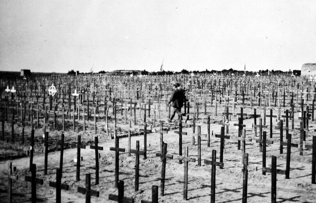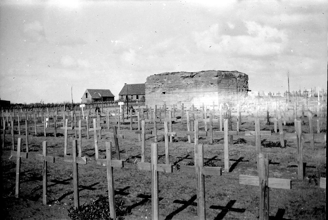 After the end of World War 1 in November 1918, teams of soldiers of the Army’s Graves Registration Units (GRU) searched the battlefields for the dead. The area around Tyne Cot was a wasteland of shell holes as far as the eye could see. Almost nothing remained of the nearby village of Zonnebeke, while Passchendaele village had been obliterated entirely. Tens of thousands of soldiers had died in this small corner of the Ypres Salient.