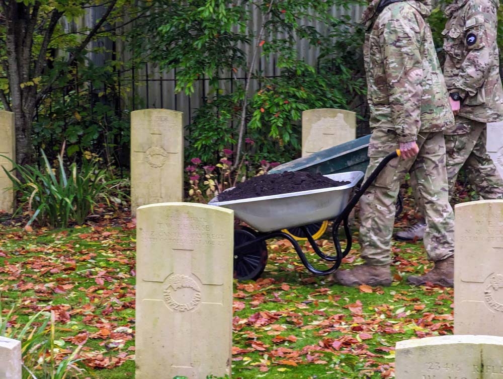 ANZAC soldiers pitch in at Codford War Cemetery, Wiltshire