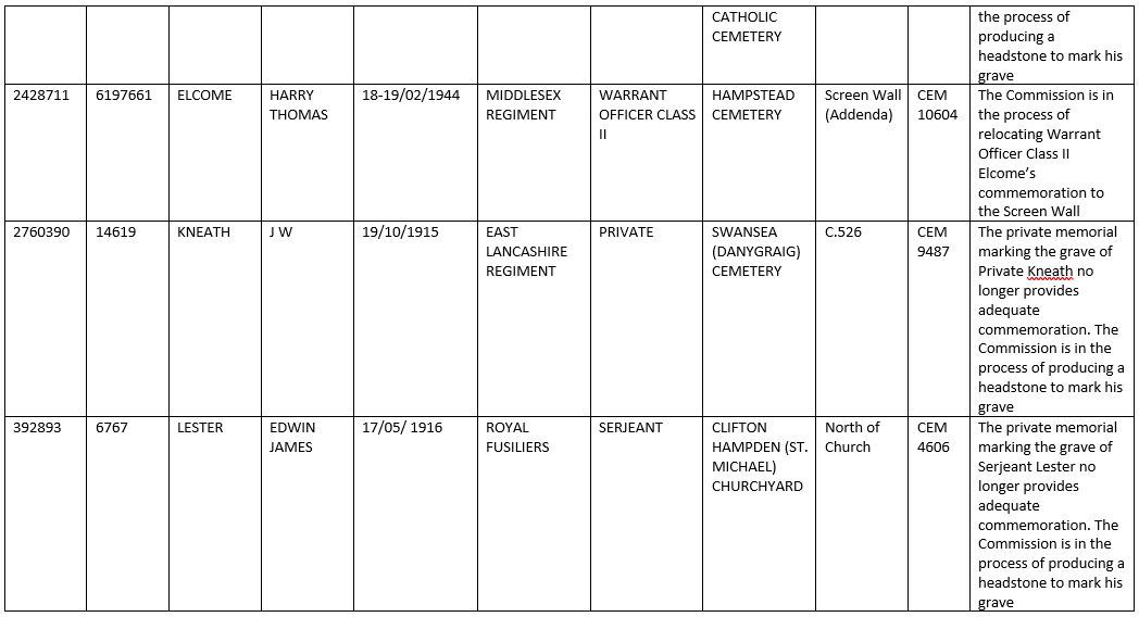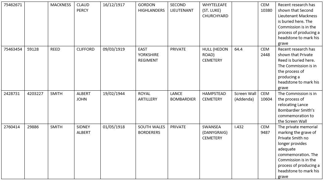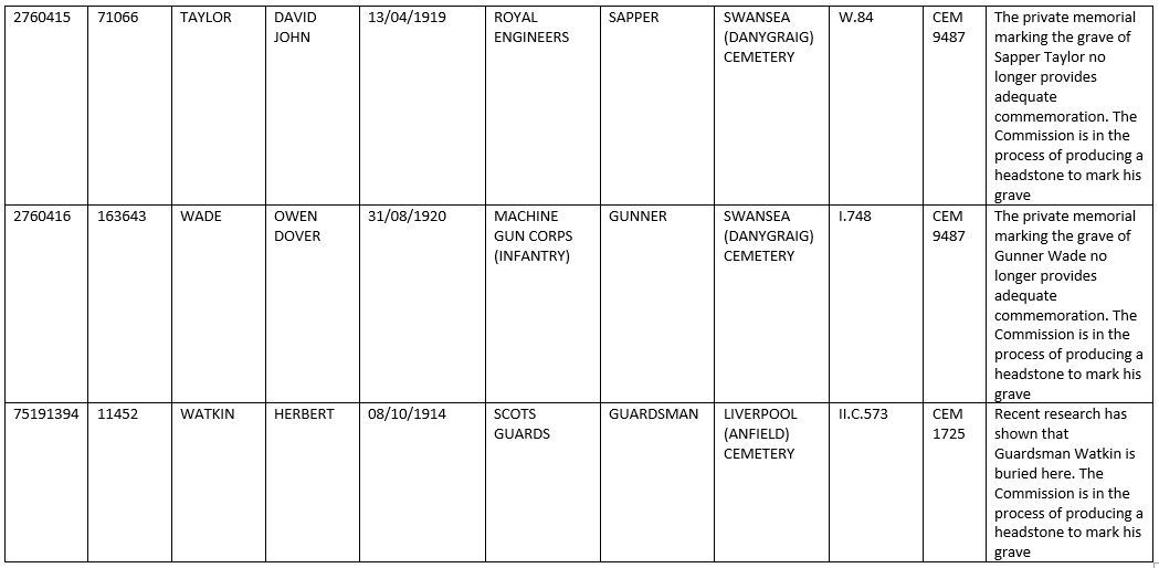 If you are related to one of the above casualties and can provide us with the documentation, please contact ourĀ Enquiries Team.