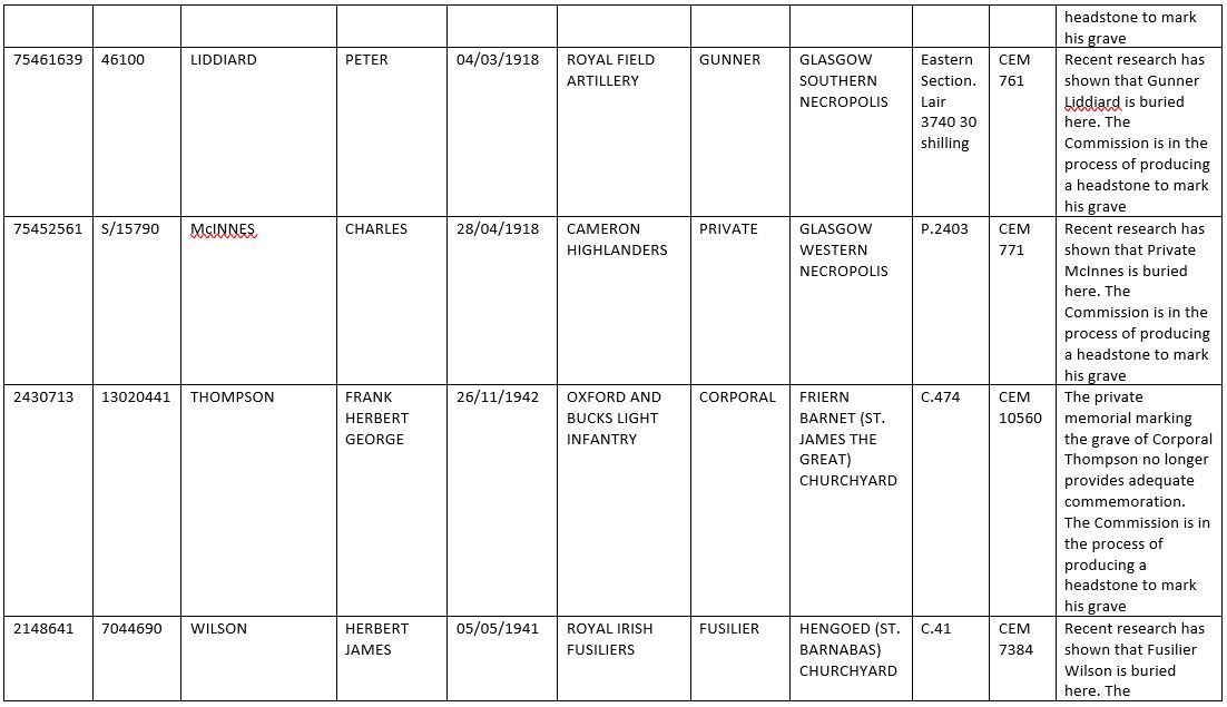 If you are related to one of the above casualties and can provide us with the documentation, please contact ourĀ Enquiries Team.