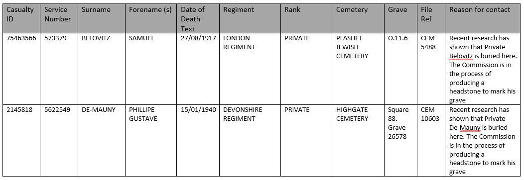If you are related to one of the above casualties and can provide us with the documentation, please contact ourĀ Enquiries Team.