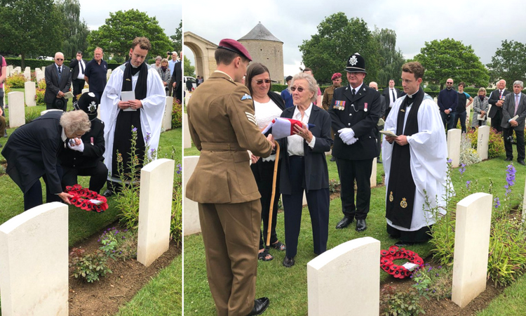 The poignant service for Private Lacey Anthony Tingle, of 224th Parachute Field Ambulance, Royal Army Medical Corps (RAMC), at Ranville War Cemetery in France, was attended by his 96-year-old sister Margaret Keighley, her son Paul and daughter Zoe Smith.