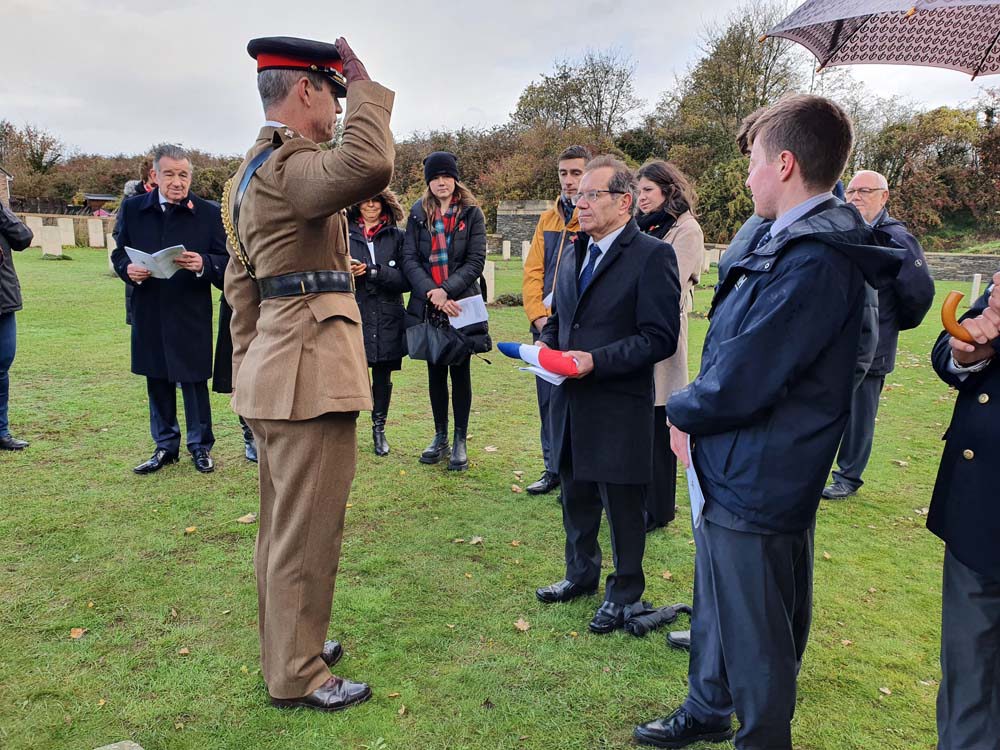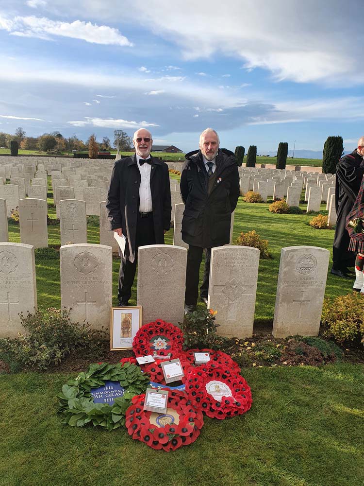"Today we stood in two beautiful cemeteries and heard nothing but birds and the distant rumbling of everyday life. A very different scene would have faced our two soldiers over a hundred years ago, when these two men made the ultimate sacrifice for their country. Having their families attend today just shows that their sacrifices will never be forgotten and they will always be remembered with grateful thanks by us all”.