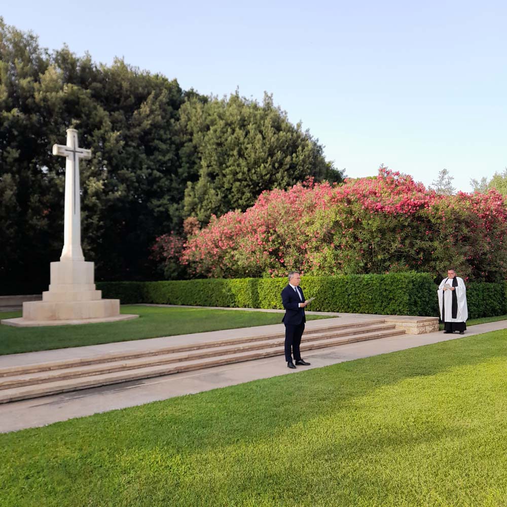 The day's second ceremony was held at Syracuse War Cemetery at 6.00 pm after the ceremonies at Catania.