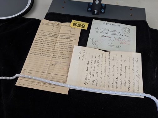 Among the items brought along were an original telegram announcing the 1918 Armistice, a soldier’s cigarettes from 1914 and trench art.