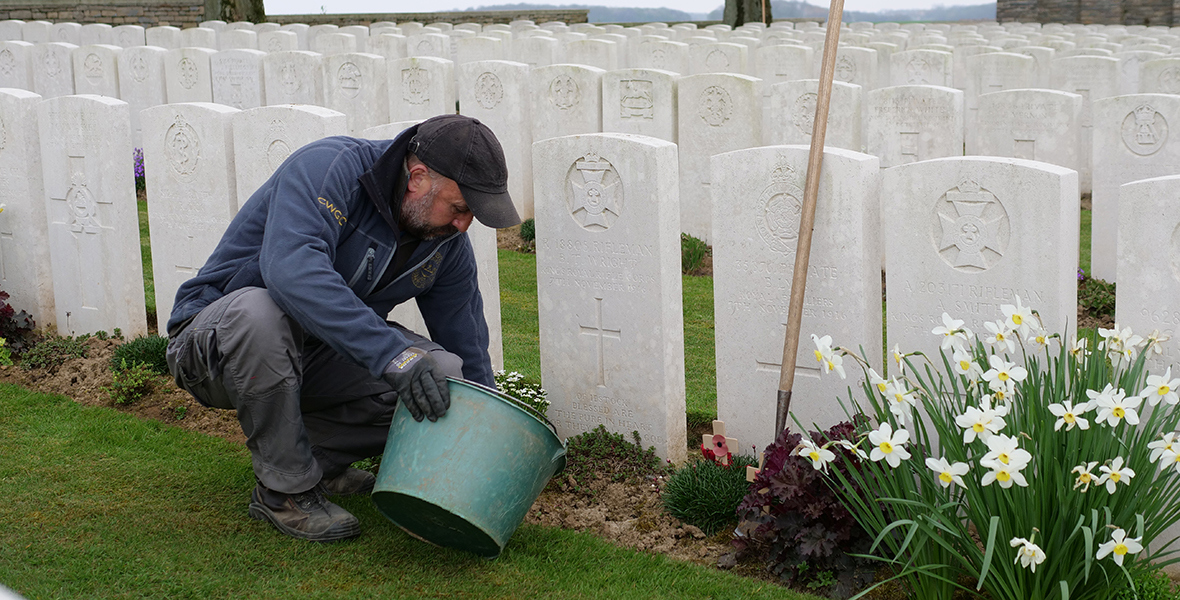 The horticulturalists go to great lengths to ensure that the right plants for the right cemetery are carefully managed and nurtured. This might mean bringing seeds from Nepal to use in the Gurkha cemeteries or maples from Canada to commemorate Canadians buried at our cemeteries in Dieppe, France.